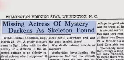 1939年,老女星艾达康斯坦斯消失的无影无踪。当局努力搜查她的假期山庄,却没发现她身影。十年后,银行询问有关乎她的下落时,警方决定再去山庄搜查一次。然而,这次却有具骷颅在她的床上等着他们。更让人吃惊的是,这根本不是艾达的骨架。那到底艾达去哪了?是生是死呢?