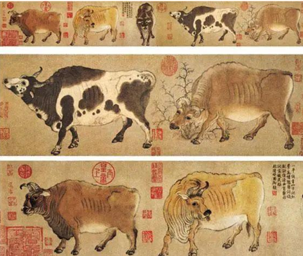 可喜的是,唐朝宰相韩滉,曾经画过一副《五牛图》。这幅画作现藏于故宫博物院,堪称中国的“镇国之宝”。因为今年是牛年,这幅画作,也曾出现在春晚的舞台之上。