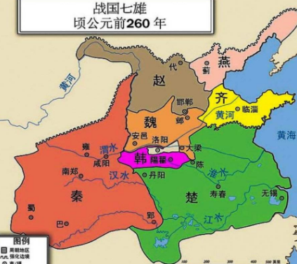 楚国出现了一位非常英明神武的国君楚威王,可能大家没有听说过这位君王,但是他的儿子大家就了解是谁了,没错,他的儿子就是客死秦国的楚怀王,也是楚国由强盛到衰退的国君。楚威王在位期间,大展宏图,任用昭阳君屈原等贤臣。与越国交战,采用昭阳君之计,一举歼灭越国十几万大军,越国主力被楚国所灭,后来越王自杀,越国土地尽归楚国,后来楚威王陆陆续续的灭掉了百十个小国,楚国的疆域得到了前所没有的扩大。楚国全盛时期占据了整个中国的大半,秦岭淮河以南全归楚国,秦岭淮河以北被其他几十个国家瓜分,此时的楚国有一统天下的趋势。