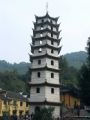 新昌风雨桥位于浙江省新昌县东南约40公里的巧英乡上三坑村,在旧时三泾至宁海的古道上。建于嘉庆十九年(1814年)。今存风雨桥,木拱桥,桥而上有桥廊可供行人避雨小憩和村民乘凉聚谈。桥长16.8米,宽4.78米,水底至桥廊檐高8.13米。桥廊用36根木柱支撑,每边13根,两侧木制板作桥栏。桥脚为23根圆木按二个八字形组合而成,其中14根木柱嵌进两岸石坎中,上铺桥板。桥廊梁上有“时嘉庆拾玖年拾月吉总理国学生俞熠、刘正辉督造”廿六字,墨迹尚可辩读,1992年5月,我国桥梁专家唐寰澄教授应邀来新考察,认为此桥是从宋代《清明上河图》中简化而出。现为县级文物保护单位