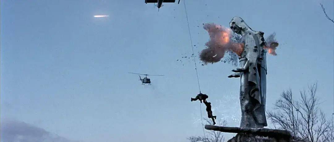 很多人都觉得在越战片里这部有点非主流,但又说不出奇怪在哪里,实际上奥利弗斯通很聪明的选择了一个绝对的小结构方式来阐述战争。