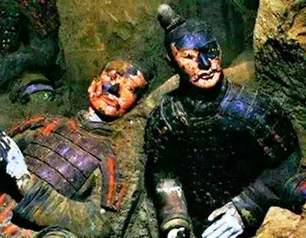 再比如普通的军营官兵,咱们就以秦兵马俑为例,其在刚刚出土只是其实并非我们所见到的这样只是单纯的“陶土”的颜色,就好像没有上色一般。其实原本是有颜色的,而且制作的十分精美,不过经过数千年的氧化及掩埋,其身上的颜色也早就随着历史车轮的前行而被氧化到了一种十分脆弱的程度。