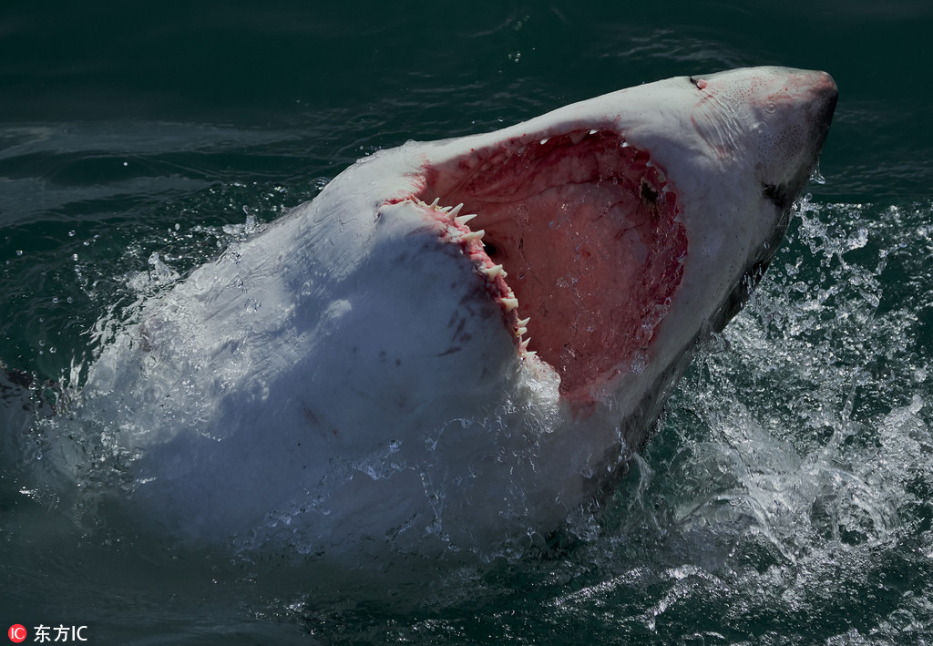 25岁的美国学生Chris Perkins在南非拍摄到一组大白鲨跃出海面捕食的震撼画面。画面中,这些体型巨大的海洋怪兽跃出海..