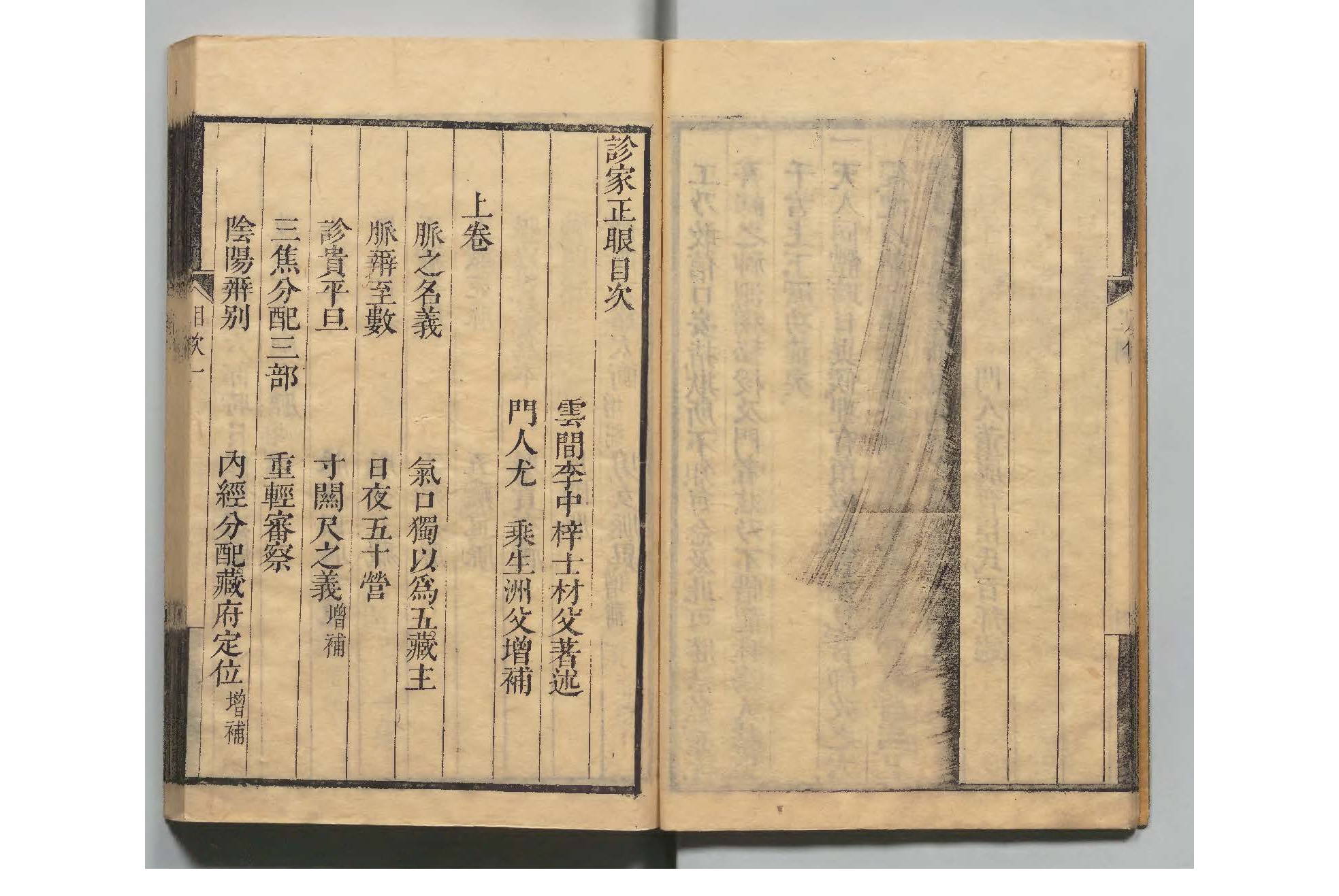 《士材三书》6册,清康熙38年刊本,先医书院藏版,作者明朝李中梓(士材),包括《诊家正眼》三卷、《本草通元(玄)》二卷、《病机沙篆》二卷,后附《寿世青编》二卷。全书合计550个筒子页(双面)。