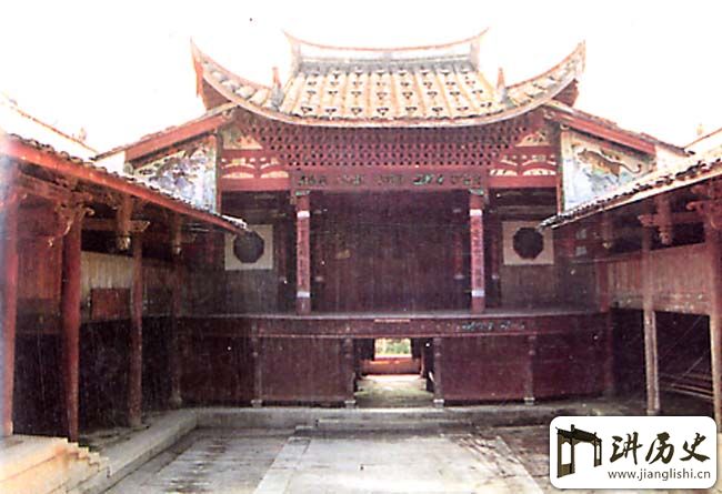 2025-07-09建于明成化年间,清代搬迁到村口安沅庙前。戏楼周围筑起了高墙,墙端呈五岳朝天型。其他形制同于弋阳李村戏台,至今保..