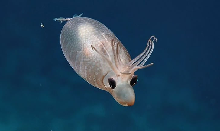 科学家深海发现罕见生物小猪鱿鱼 像鹿又像猪美国非营利组织The Ocean Exploration Trust长期在全球进行海洋研究任务,..